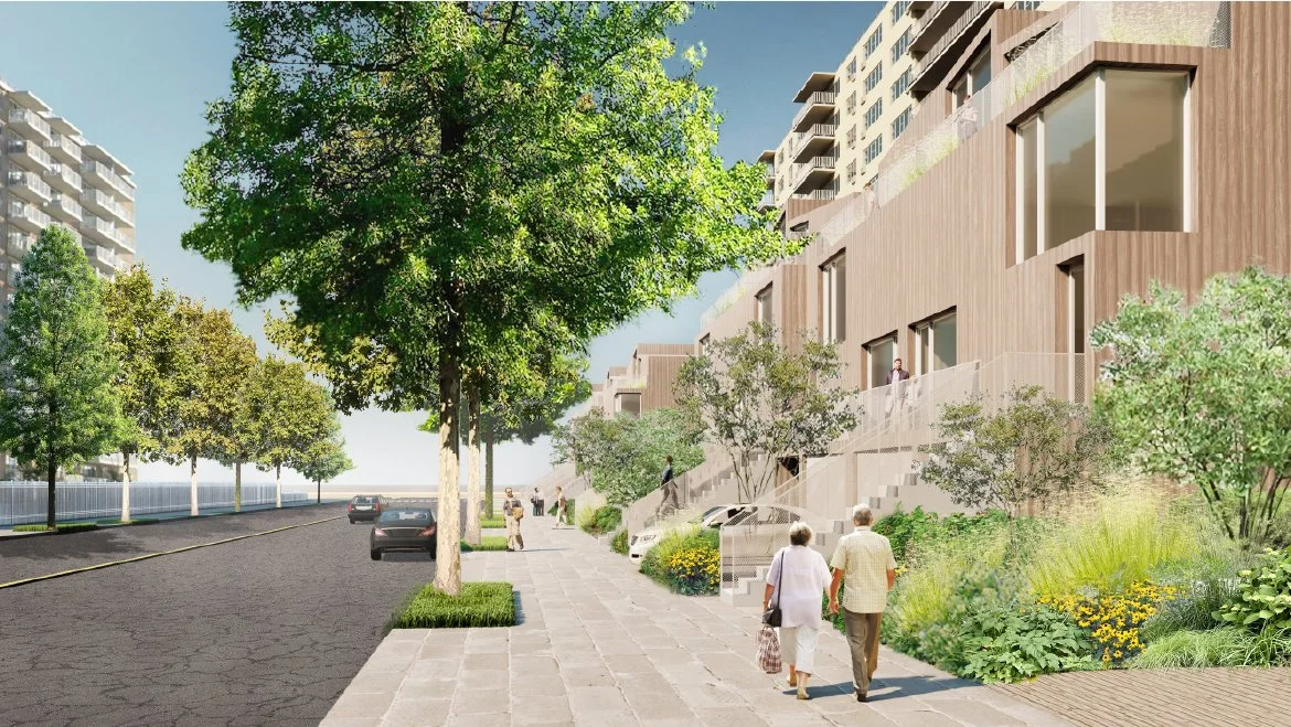 Situated in New York City’s most vibrant public beach, the expansion of Surfside Park Apartments will include four towers of new housing, new public parks, streamlined access to both public transportation and the beach, a proposed aquatic center, and, most importantly, a state-of-the-art resiliency center that would serve the entire Rockaway community in severe storm recovery. We plan to incorporate new pathways and connections throughout the site, which will reconnect the community to the waterfront, subway stop, and ferry terminal.